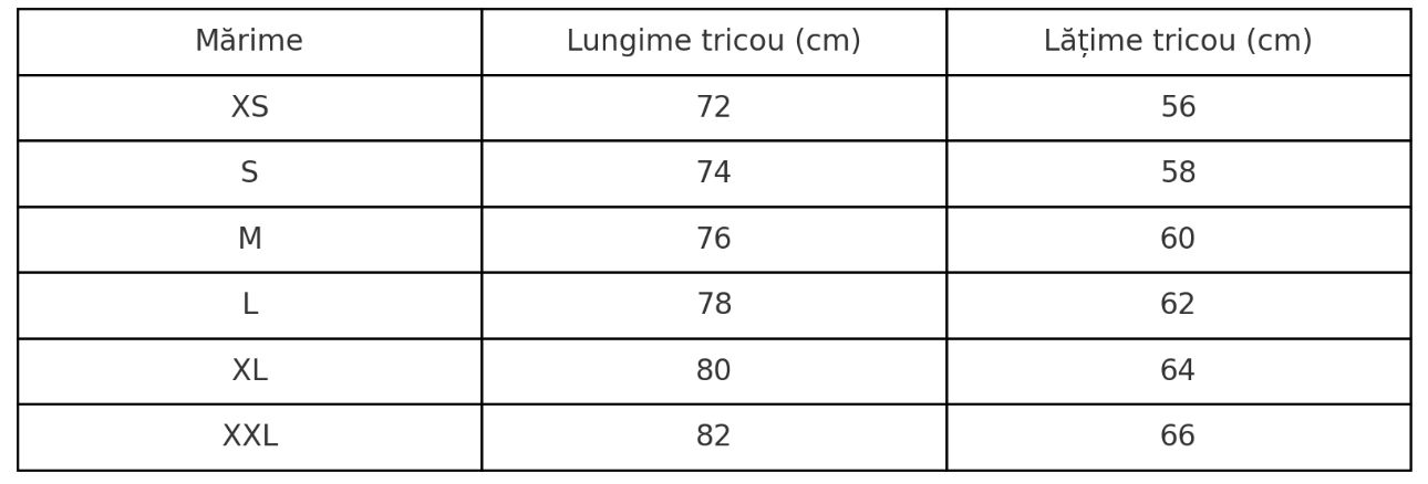 Model unisex, disponibil în mărimi de la XS la XXL